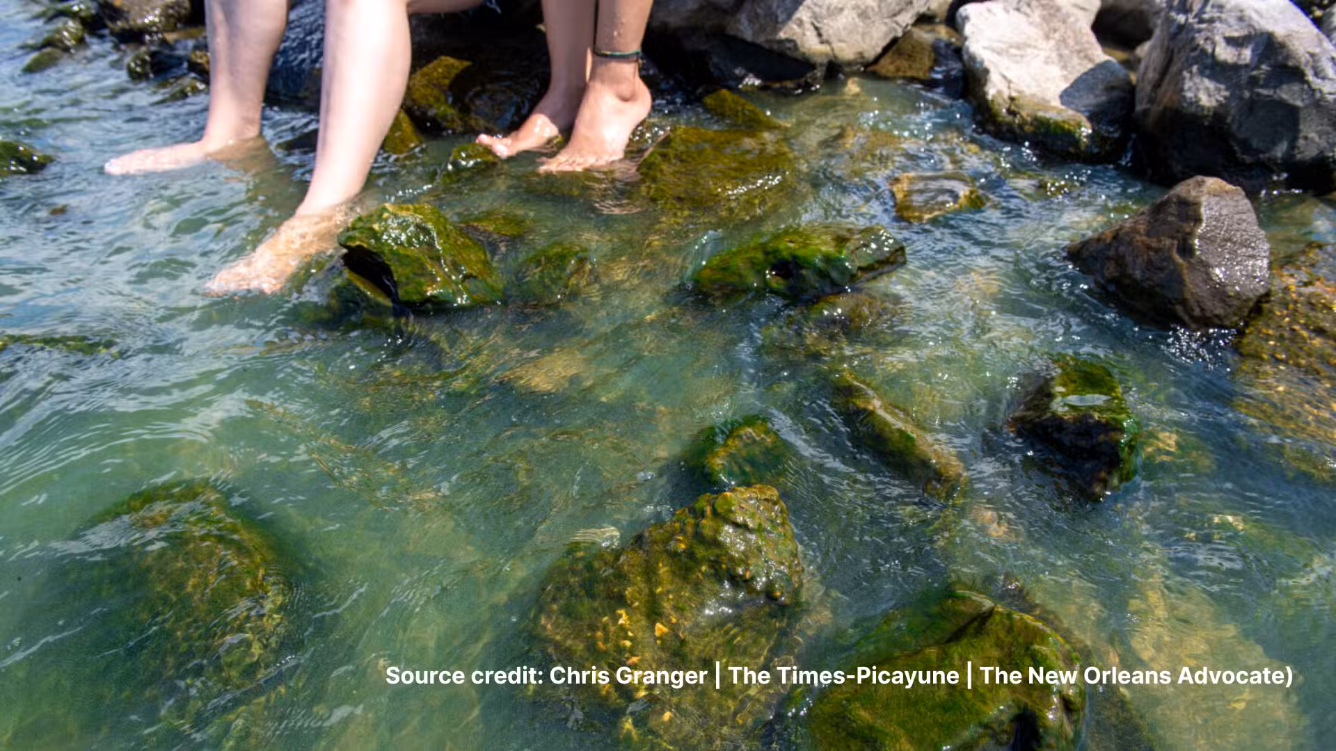 Green scum seen floating on top of the water indicating cyanobacteria presence. Source credit: lawschoollies.com